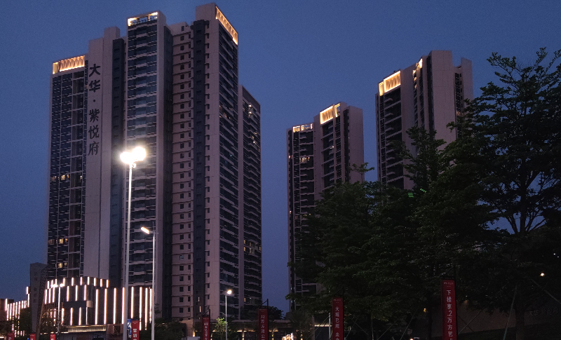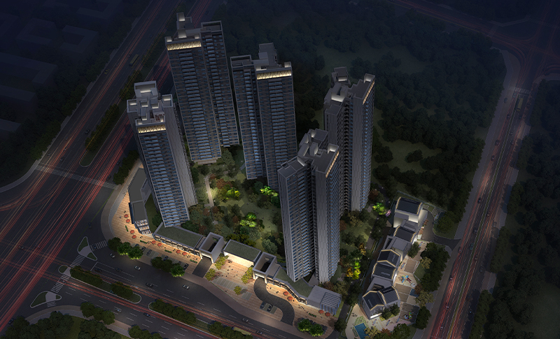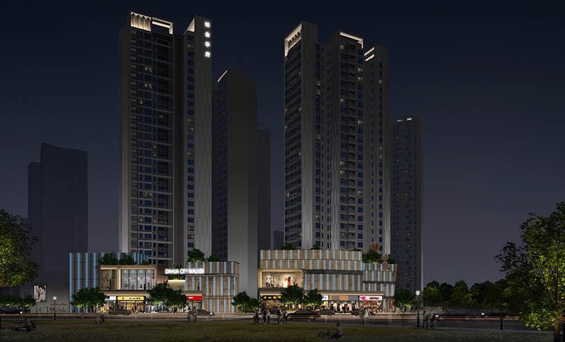 设计范围:售楼部、高层住宅及底商、幼儿园、公厕单元入口及景观入口的外立面泛光照明设计